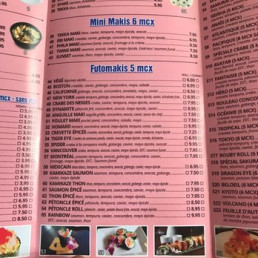 45 Futomaki, 12 Hoso maki, 24 Maki, 10 Nigiri, 5 Dragon eye, 6 Kyoto, 5 Geisha, 8 Crevette tempura. 5 besame mucho .